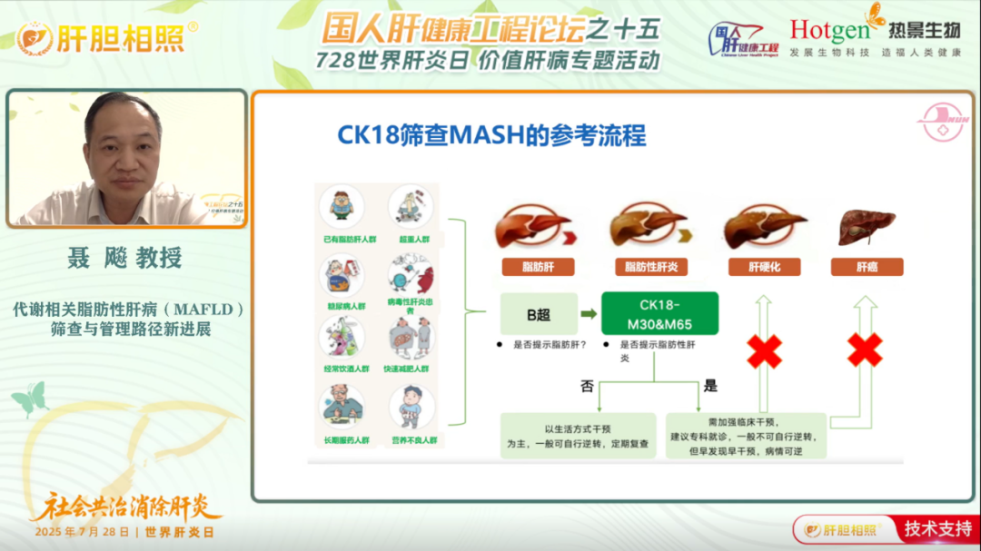 2025年7月28日是第15個(gè)世界肝炎日,今年我國(guó)的宣傳主題是“社會(huì)共治,消除肝炎”。在世界肝炎日之際,由熱景生物攜手肝膽相照平臺(tái)聯(lián)合舉辦的“國(guó)人肝健康工程論壇”系列活動(dòng)再度啟程。本次直播以“以價(jià)值醫(yī)療驅(qū)動(dòng)肝病全過(guò)程管理新實(shí)踐”為主題,圍繞價(jià)值醫(yī)療與肝病全過(guò)程管理核心邏輯,匯聚國(guó)內(nèi)肝病領(lǐng)域頂尖專家,深入探討肝癌早篩體系優(yōu)化、代謝相關(guān)脂肪性肝病(MAFLD)精準(zhǔn)管理、慢性乙肝臨床治愈突破等關(guān)鍵議題,為臨床實(shí)踐提供前沿技術(shù)支撐與全周期解決方案。