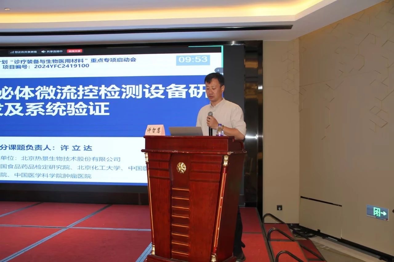 5月16日,國(guó)家重點(diǎn)研發(fā)計(jì)劃“診療裝備與生物醫(yī)用材料”重點(diǎn)專項(xiàng) “疾病特異性外泌體檢測(cè)技術(shù)研究及樣機(jī)研制”項(xiàng)目啟動(dòng)會(huì)在廣州召開(kāi)。項(xiàng)目由南方醫(yī)科大學(xué)南方醫(yī)院牽頭、聯(lián)合中國(guó)醫(yī)學(xué)科學(xué)院北京協(xié)和醫(yī)院、中國(guó)醫(yī)學(xué)科學(xué)院腫瘤醫(yī)院、北京化工大學(xué)、北京熱景生物技術(shù)股份有限公司等單位共同承擔(dān)。項(xiàng)目及各子課題負(fù)責(zé)人對(duì)課題實(shí)施方案及近期進(jìn)展進(jìn)行匯報(bào),認(rèn)真聽(tīng)取指導(dǎo)專家的意見(jiàn)和建議。